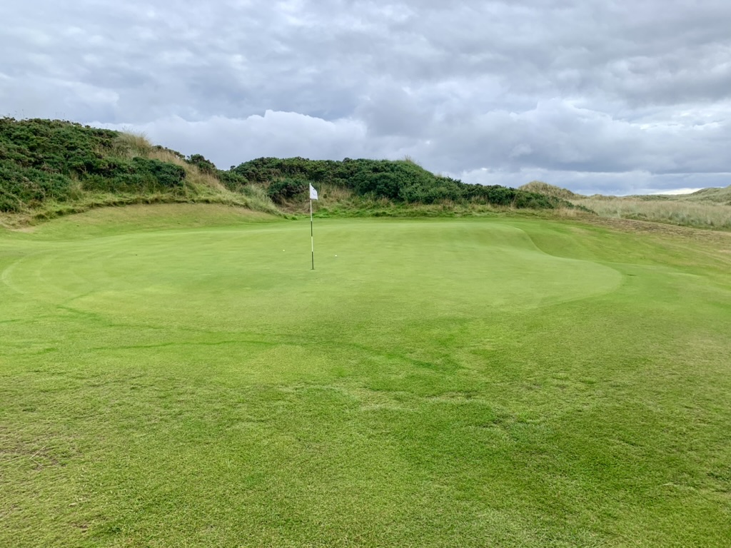 This course has enough land for a proper driving range and a huge practice putting and chipping green and probably another golf course as well! We used all the practice areas before playing our first 9 today. St. Olaf is a challenging course with lots of elevation and gorse to keep you focused. The greens aren’t large, but they’re well-designed and tricky. I quizzed the pro about #6 which I remembered from 4 years ago, hitting the perfect second shot and never finding it over the hill. Blind shots are always a problem!