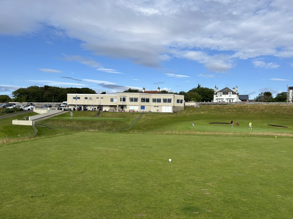 Our tee time was 10:10, and we were scheduled to play with Janice from the pro shop, but sadly, Janice has recently developed two bad knees. She said neither of them felt up to the game. Plus, she’d forgotten and was scheduled to work today! So, it was just us on our own today (Scottish saying). Something that has really changed in the Highlands is the sudden change in popularity. There were full-sized tour buses in the little Brora Golf Club parking lot! Shock and horror. I’ll take the blame. I’ve obviously told too many friends about the wonders of this lovely links course, and the word has spread. So, please don’t tell your friends!!