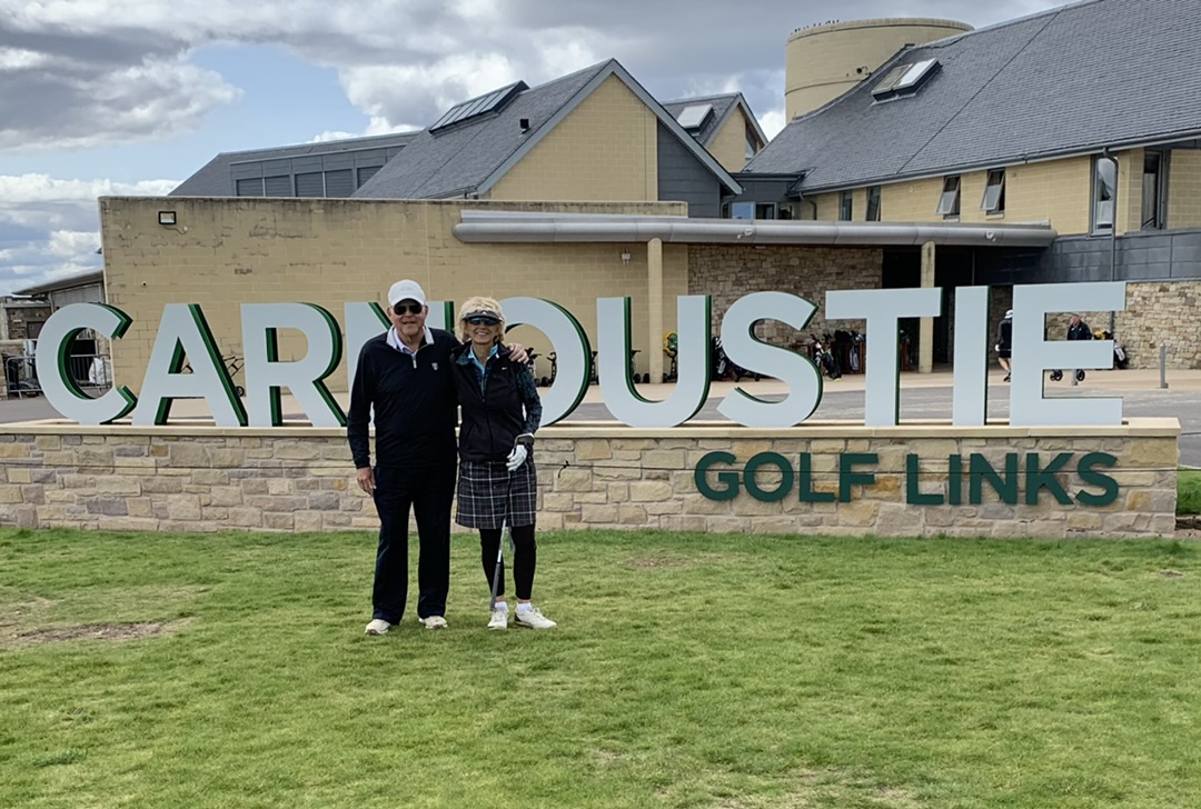 During the Senior Open (held here just a few weeks ago), I memorized all the names of all the holes on the course—ask me to recite them sometime. Ha ha! (Cup, Gulley, Jockie’s Burn, Hillock, Brae, Hogan’s Alley…). It was fun to learn the stories behind the names from Kerr. He was a delightful person. We were so glad to have “played” golf with him for two days and will do our best to keep in touch!